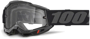 100% Accuri 2 Enduro MTB Goggles - Black/Clear. The 100% Accuri 2 returns to set the benchmark for a premium performance goggle. Delivering utmost protection visibility and comfort for sight to line while performing. Now with a 17.5% larger vertical field of view.Improved fitment and seal with increased field of view
