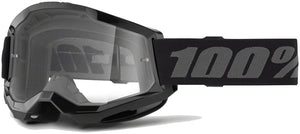 100% Strata 2 Goggles - Black/Clear. Leading the charge of premium performance at value the Strata 2 is the essential riding goggle. From trail to track the Strata 2 offers a near limitless field of view for our top athletes and comfort for the everyday rider.Improved fitment and seal with increased field of view