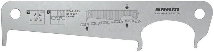 SRAM Chain Wear Check Tool. The SRAM chain wear indicator tool is compatible will all the existing SRAM chain models and this includes HARD CHROME and non-HARD CHROME chain technology with a 0.8% wear critical specification.